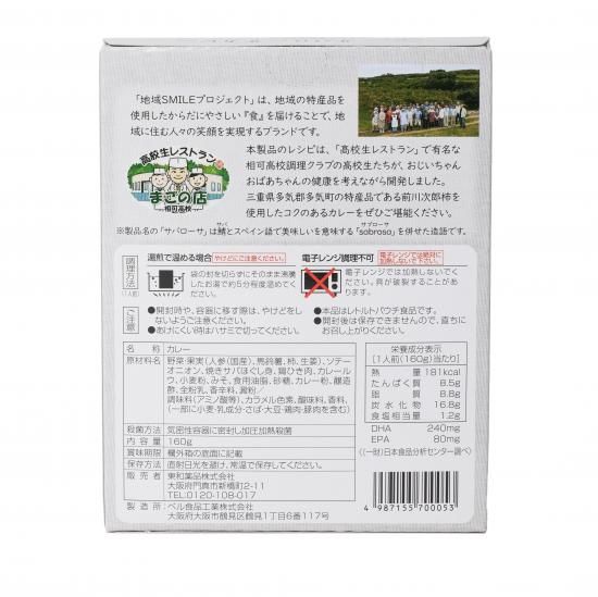 - 野菜・果実(人参(国産)、馬鈴薯、柿、生姜)、ソテーオニオン、焼きサバほぐし身、鶏ひき肉、カレールウ、小麦粉、みそ、食用油脂、砂糖、カレー粉、醸造酢、全粒粉、香辛料、澱粉/調味料(アミノ酸等)、カラメル色素、酸味料、香料(一部に小麦・乳成分・さば・大豆・鶏肉・豚肉を含む)